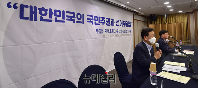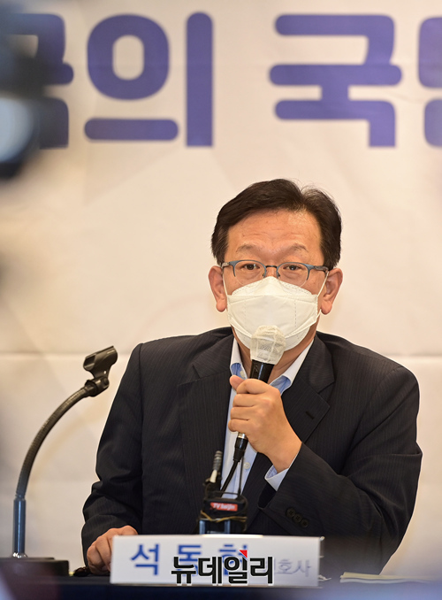 석동현 변호사가 25일 오후 서울 중구 한국프레스센터에서 '대한민국의 국민주권과 선거 무결성'을 주제로 열린 무결선거네트워크(무선넷) 창립 심포지엄에서 모두 발언을 하고 있다.무선넷은 사회정의를바라는 전국교수모임(정교모), 4.15부정선거국민투쟁본부(국투본), 대한민국ROTC애국동지회, 리버티연대가 연대한 단체다.심포지엄에는 민경욱 국투본 대표, 석동현 변호사가 모두 발언을 맡았다. 황교안 전 국무총리는 영상 인사로 대신했다. 이어진 발표에는 조성환 경기대 교수, 도태우 변호사, 이제봉 울산대 교수, 박주현 변호사, 박성현 리버티연대 대표가 맡았다.