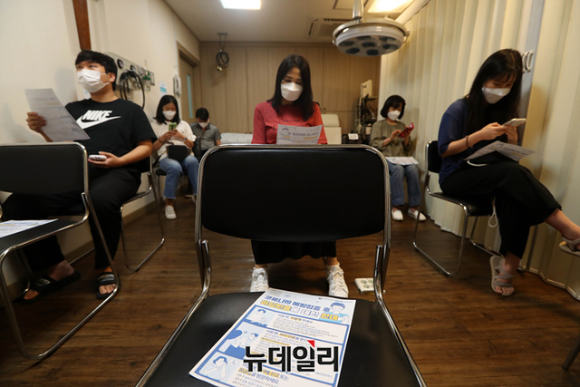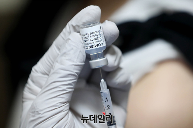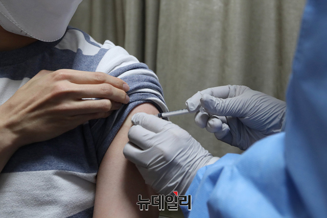 18~49세 청장년층 사전예약자를 대상으로 한 코로나19 백신 접종이 시작된 26일 오전 서울 관악구의 한 병원에서 한 시민이 백신 접종을 받고 있다.