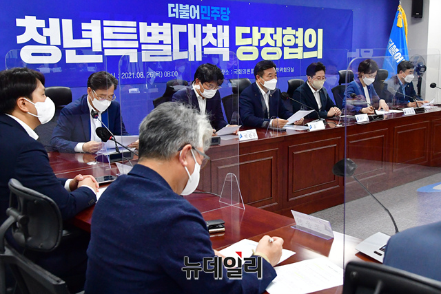 윤호중 더불어민주당 원내대표가 26일 오전 국회 의원회관에서 열린 청년특별대책 당정협의에 참석해 발언을 하고 있다. (사진=공동취재단)