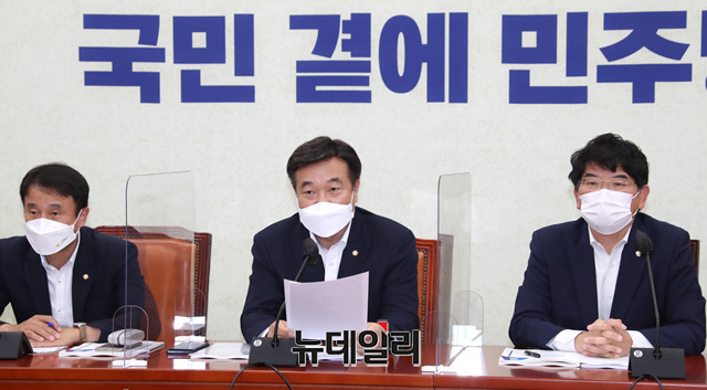 윤호중 더불어민주당 원내대표가 26일 오전 국회에서 열린 정책조정회의에서 발언을 하고 있다. (사진=공동취재단)