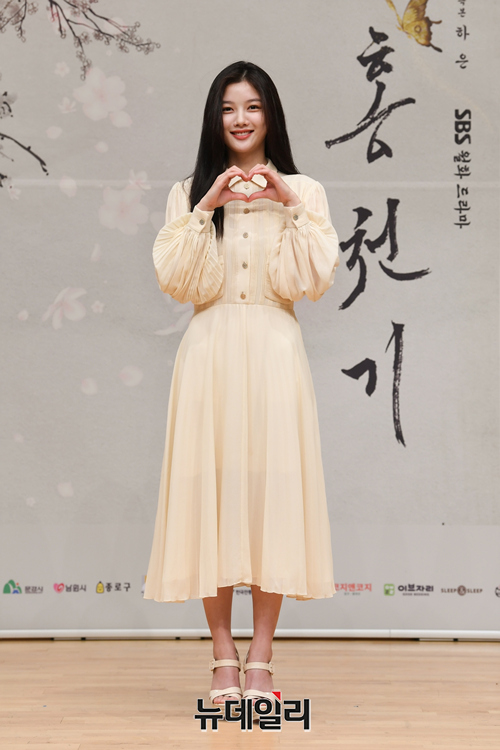 배우 김유정이 26일 오후 온라인으로 열린 SBS 새 월화드라마 '홍천기(연출 장태유, 작가 하은)' 제작발표회에서 포즈를 취하고 있다.