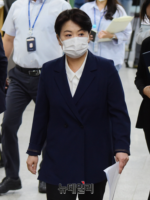 [포토] 소통관 들어서는 윤희숙 국민의힘 의원