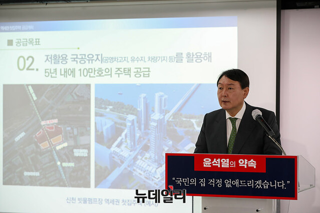 저는 재건축·재개발이 원활히 이루어질 수 있도록 제도를 개선하고, 용적률 인센티브를 활용하여 신규주택의 공급을 확대하며, 수도권 3기 신도시의 차질 없는 추진 등을 통해 5년 동안 전국에 250만호 이상, 수도권에 130만호 이상의 신규주택을 공급하겠습니다.