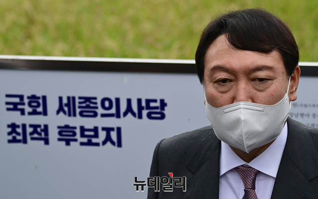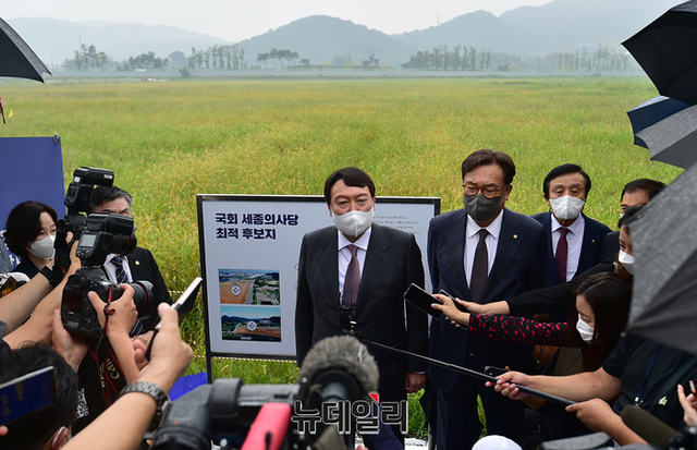 국민의힘 대권주자인 윤석열 전 검찰총장이 30일 오후 세종시 국회 세종의사당 후보지를 방문해 발언하고 있다. (세종=정상윤 기자)