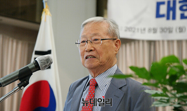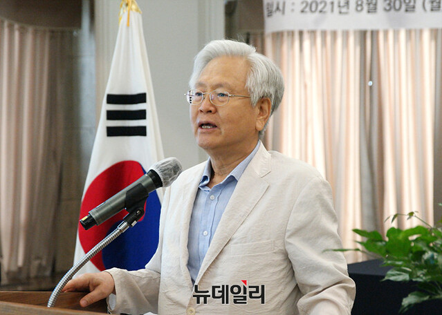 신철식 이승만건국대통령기념사업회 회장이 30일 오후 서울 중구 한국프레스센터에서 열린 '대한민국 건국 73주년 기념 학술대회'에서 기념사를 낭독하고 있다.신 회장은 "이번 학술대회가 건국 헌법의 이념 그리고 그 가치를 향한 논의와 역사규명을 위한 기폭제가 되었으면 한다"고 말했다.이날 행사에는 김기현 국민의힘 원내대표, 고영주 자유민주당 대표가 축사했다. 한반도인권과통일을위한변호사모임(한변)을 비롯한 39개 시민단체 등이 참여했다.