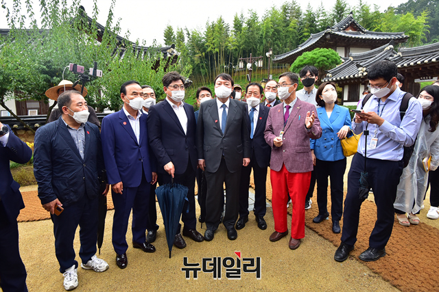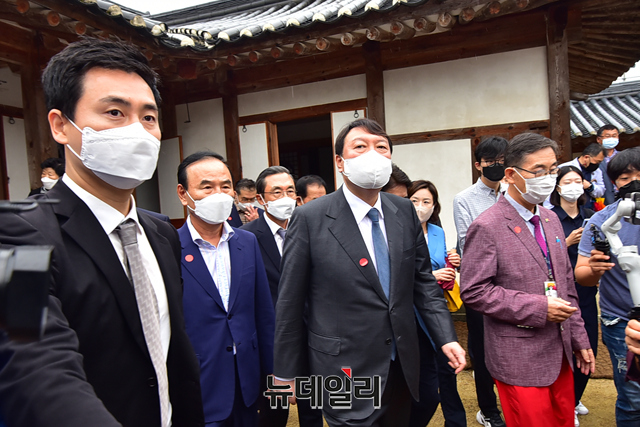 국민의힘 대권주자인 윤석열 전 검찰총장이 31일 오전 충북 옥천군 육영수 여사 생가를 방문해 육 여사의 사진기록물을 살펴 보고 있다. (충북 옥천=강민석 기자)