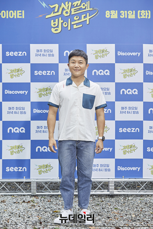 개그맨 조세호가 31일 오전 온라인으로 열린 예능 프로그램 '고생 끝에 밥이 온다(연출 이준석)' 제작발표회에서 포토타임을 갖고 있다.'고생 끝에 밥이 온다'는 NQQ와 디스커버리 채널 코리아가 공동 제작한다. 고생과 먹방을 콜라보로 한 리얼 버라이어티 예능 프로그램이다. 82년생 개그맨 문세윤, 조세호, 황제성, 강재준이 출연한다.31일 오후 8시 NQQ와 디스커버리 채널 코리아에서 첫 방송된다. OTT 서비스 seezn(시즌)에서 1주일 전 선공개 된다. (사진=NQQ/디스커버리 채널 코리아)