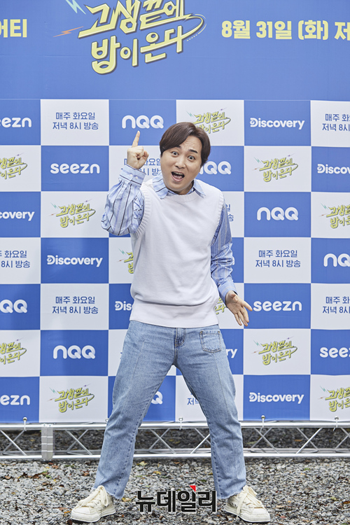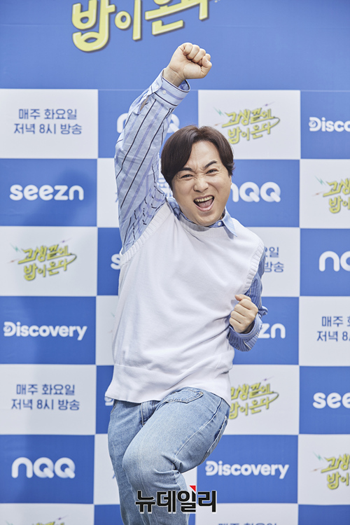 개그맨 황제성이 31일 오전 온라인으로 열린 예능 프로그램 '고생 끝에 밥이 온다(연출 이준석)' 제작발표회에서 포토타임을 갖고 있다.'고생 끝에 밥이 온다'는 NQQ와 디스커버리 채널 코리아가 공동 제작한다. 고생과 먹방을 콜라보로 한 리얼 버라이어티 예능 프로그램이다. 82년생 개그맨 문세윤, 조세호, 황제성, 강재준이 출연한다.31일 오후 8시 NQQ와 디스커버리 채널 코리아에서 첫 방송된다. OTT 서비스 seezn(시즌)에서 1주일 전 선공개 된다. (사진=NQQ/디스커버리 채널 코리아)