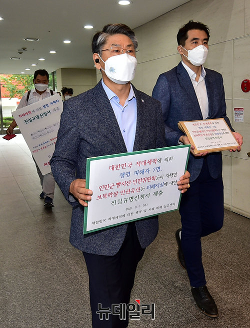 북한인권단체 물망초 차동길 센터장이 1일 오전 서울 중구 진실화해를위한과거사정리위원회에 적대세력에 학살된 우리 국민 7명의 진실규명 및 보상 신청서를 접수했다.