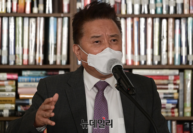 공정개혁포럼 공동대표를 맡은 김형기 경북대 명예교수와 김영환 전 국회의원이 1일 오후 서울 종로구 복합문화공간에서 열린 창립 토론회에서 인사말을 하고 있다. 이날 토론회에는 국민의힘 대선주자 윤석열 예비 후보가 참석했다.