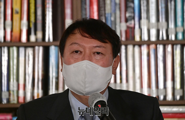 국민의힘 대선주자 윤석열 예비 후보가 1일 오후 서울 종로구 인사동 복합문화공간에서 열린 공정개혁포럼 창립 토론회에 참석해 참석자와 악수를 나누고 있다.