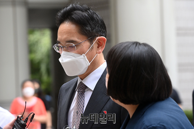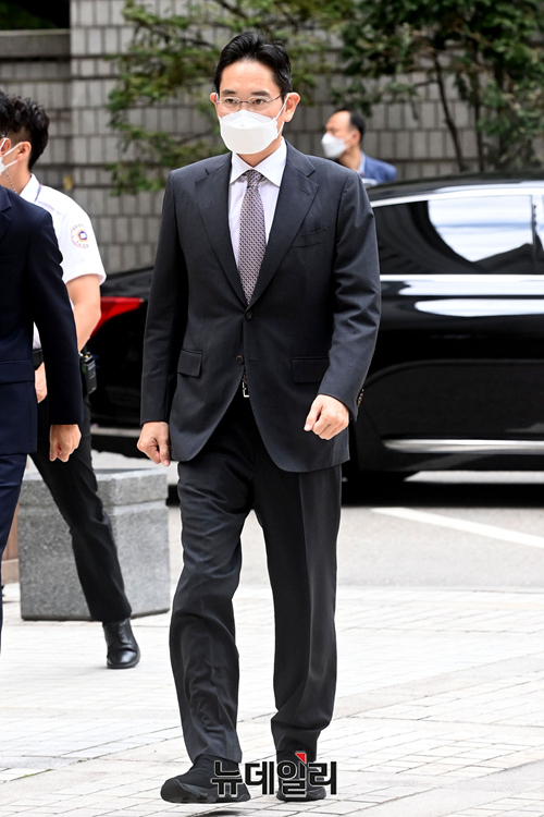 이재용 삼성전자 부회장이 2일 오전 서울 서초구 서울중앙지법에서 열린 14차 공판에 출석하고 있다.
