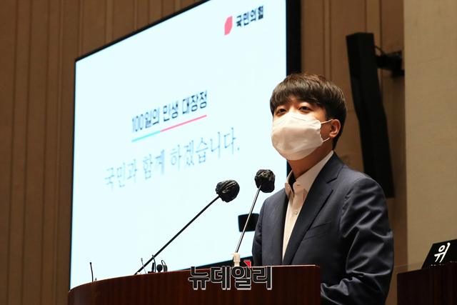 이준석 국민의힘 대표가 2일 오전 국회에서 열린 정기국회 대비 의원 워크숍에서 모두발언을 하고 있다. (사진=공동취재단)