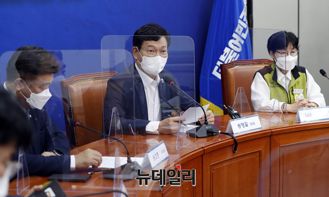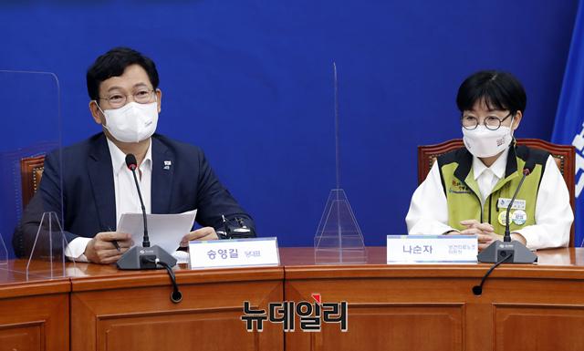 송영길 더불어민주당 대표가 2일 오전 국회에서 열린 보건의료노조와 간담회에서 발언을 하고 있다. (사진=공동취재단)