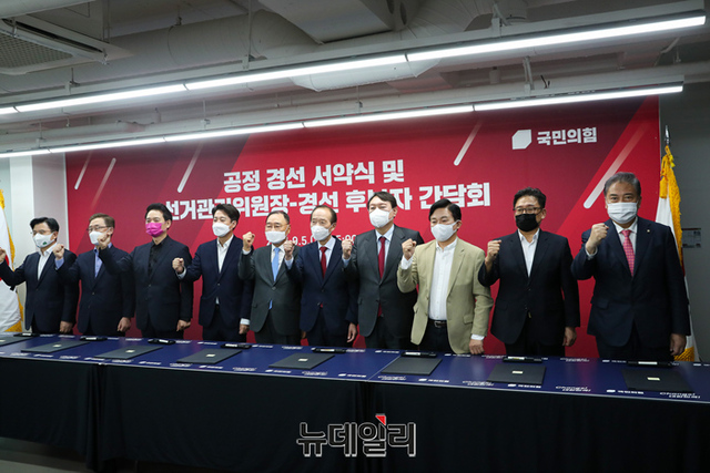 [포토] 공정경선 서약식 참석한 국민의힘 후보...홍준표-유승민-하태경-안상수 불참