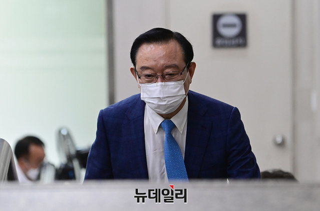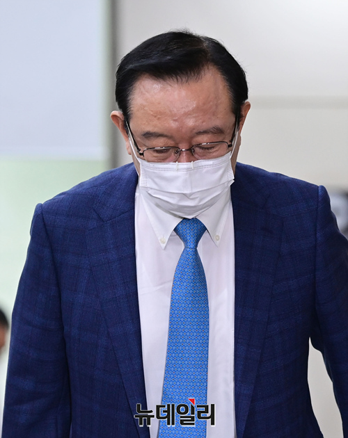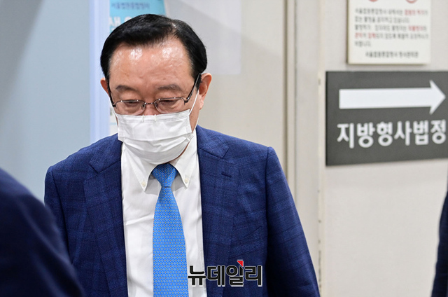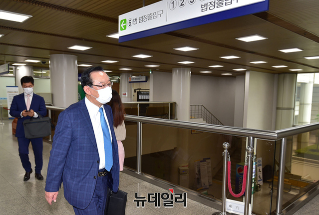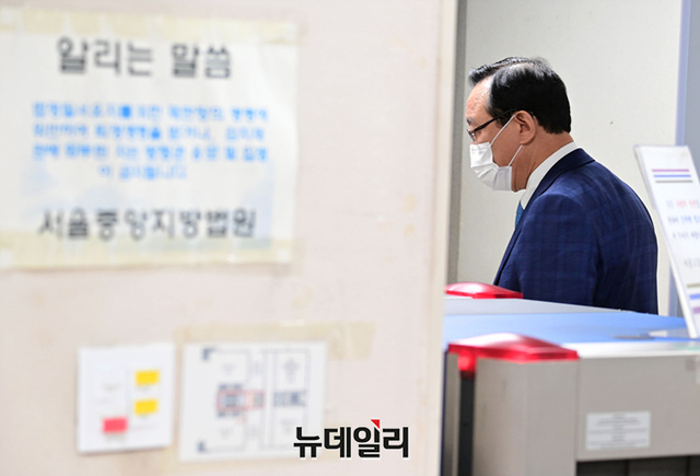 청와대 하명수사 및 선거개입 혐의를 받고 있는 송철호 울산시장이 6일 오전 서울 서초구 서울중앙지법에서 열린 공판에 출석하고 있다.