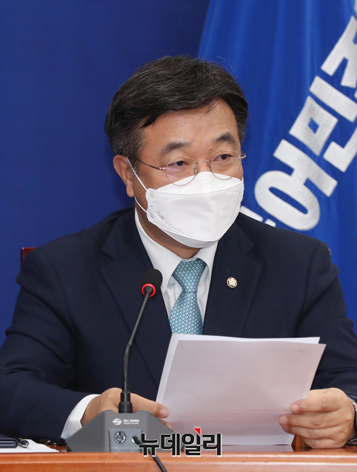 윤호중 더불어민주당 원내대표가 6일 오전 국회에서 열린 최고위원회의에서 모두발언을 하고 있다. (사진=공동취재단)