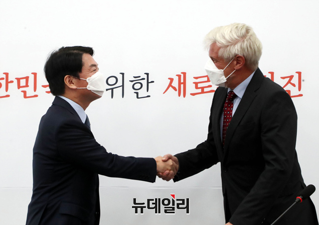 [포토] 악수 나누는 안철수 대표와 미하엘 라이펜슈툴 주한 독일 대사