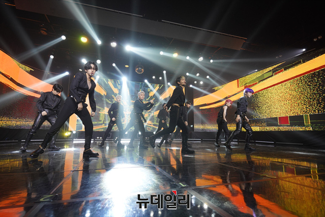 아이돌그룹 오메가엑스(재한, 휘찬, 세빈, 한겸, 태동, XEN, 제현, KEVIN, 정훈, 혁, 예찬)가 6일 오후 온라인으로 열린 첫 번째 싱글 'WHAT'S GOIN' ON' 쇼케이스에서 타이틀곡 무대를 선보이고 있다.이번 싱글은 글로벌 K팝 시장을 향한 오메가엑스의 야심찬 포부와 열정을 담아 'E 버전' 'F 버전' 'S 버전' 등 총 3가지 콘셉트로 구성했다. 타이틀곡 'WHAT'S GOIN' ON'은 오메가엑스의 뜨거운 열정과 강렬한 카리스마를 극대화 시킨 곡이다. (사진=스파이어엔터테인먼트)