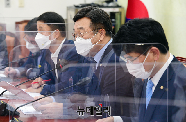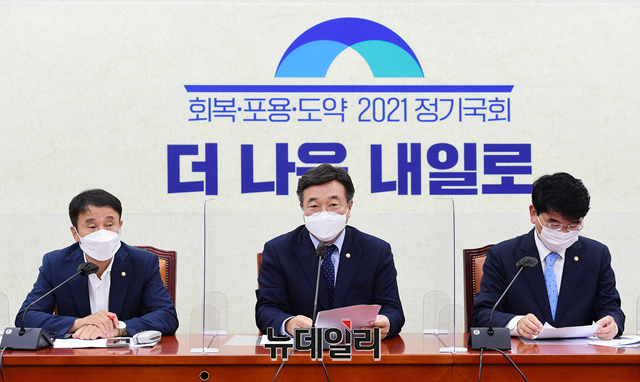 윤호중 더불어민주당 원내대표가 7일 국회에서 열린 원내대책회의에서 모두발언을 하고 있다. (사진=공동취재단)