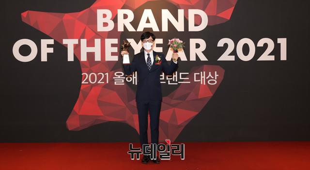 개그맨 유재석이 7일 오전 온라인으로 진행된 '2021 올해의 브랜드 대상' 시상식에 참석해 수상 소감을 하고 있다. (사진=한국소비자포럼)