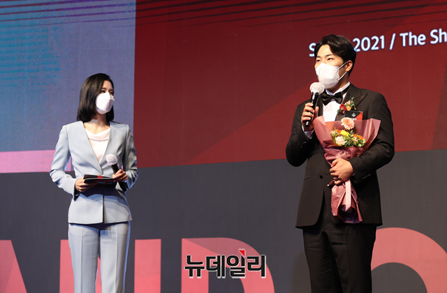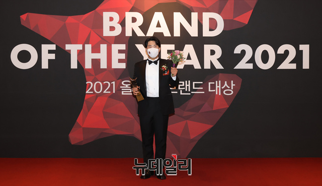 개그맨 김해준이 7일 오전 온라인으로 진행된 '2021 올해의 브랜드 대상' 시상식에 참석해 포토타임을 갖고 있다. (사진=한국소비자포럼)