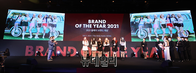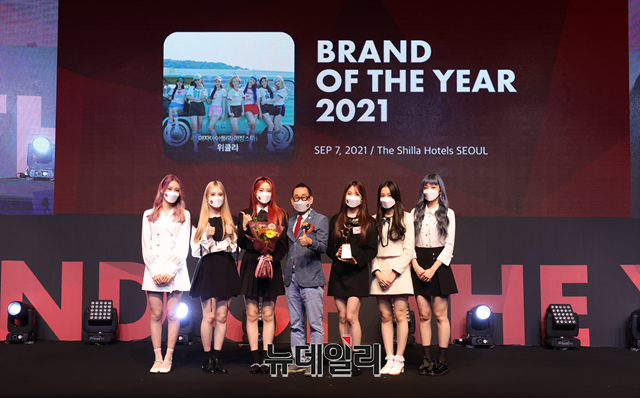 걸그룹 위클리 (이수진, 먼데이, 지한, 신지윤, 박소은, 조아, 이재희)가 7일 오전 온라인으로 진행된 '2021 올해의 브랜드 대상' 시상식에 참석해 포토타임을 갖고 있다. (사진=한국소비자포럼)