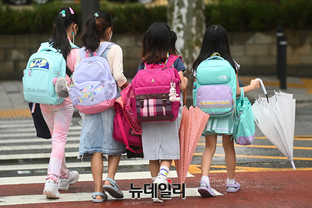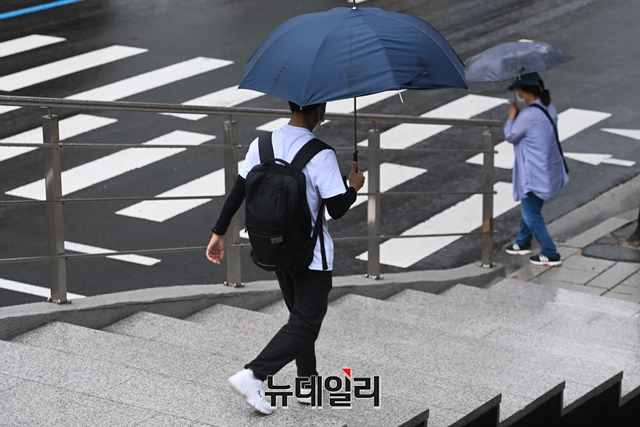 본격적인 가을이 시작된다는 '백로(白露)'인 7일 서울 종로구 일대 거리에서 우산을 쓴 시민들이 횡단보도를 건너고 있다.