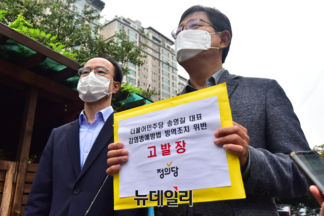 [포토] 정의당, 송영길 더불어민주당 대표 감염병예방법 위반 혐의로 고발