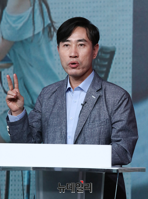 하태경 국민의힘 대선 예비후보가 7일 오후 서울 강서구 ASSA빌딩 방송스튜디오에서 열린 국민의힘 대선 경선 후보 '체인지 대한민국, 3대 약속' 발표회에서 공약을 발표하고 있다. (사진=공동취재단)