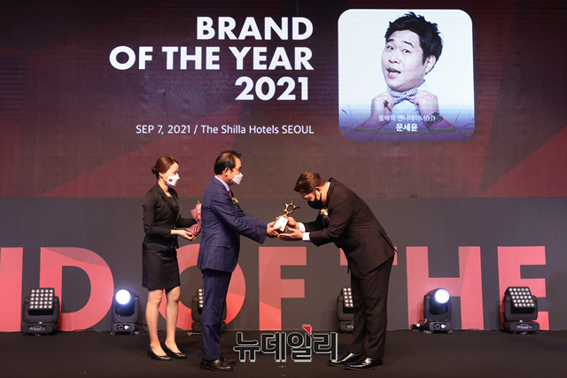 개그맨 문세윤이 7일 오후 온라인으로 진행된 '2021 올해의 브랜드 대상' 시상식에 참석해 엔터테이너상을 수상했다.