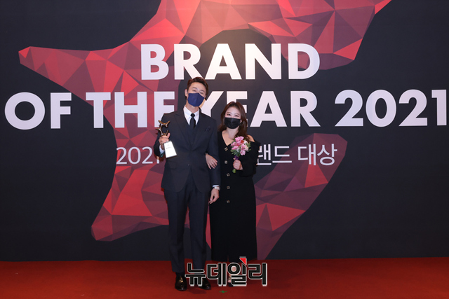 방송인 김원효, 심진화가 7일 오후 온라인으로 진행된 '2021 올해의 브랜드 대상' 시상식에서 베스트커플상을 수상했다.