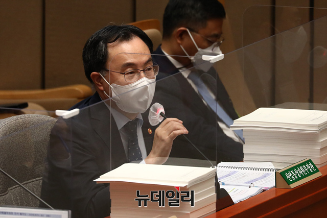 문승욱 산업통상자원부 장관이 8일 국회에서 열린 예산결산특별위원회 전체회의에 출석해 의원들의 질문에 답하고 있다. (사진=공동취재단)