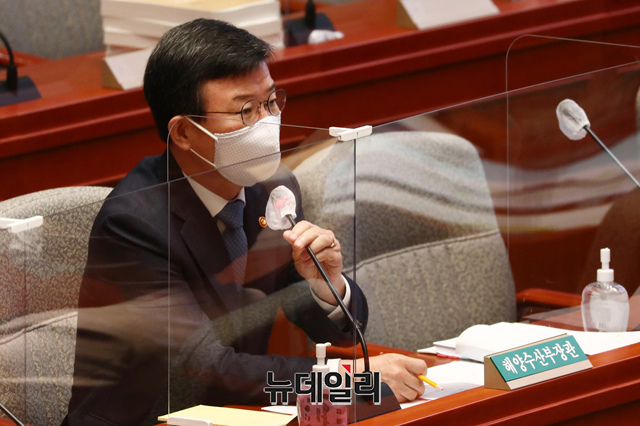 문성혁 해양수산부 장관이 8일 국회에서 열린 예산결산특별위원회 전체회의에 출석해 의원들의 질문에 답하고 있다. (사진=공동취재단)
