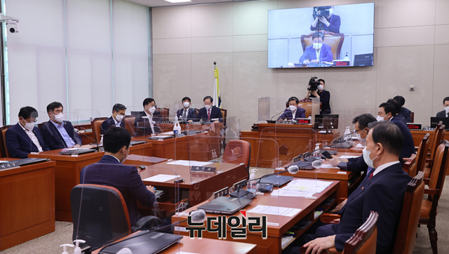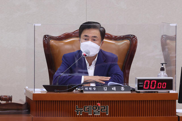 김태흠 농림축산식품해양수산위원회 위원장이 8일 오전 국회에서 열린 농해수위 전체회의에서 인사말을 하고 있다.