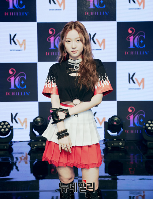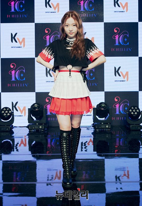 신인 걸그룹 아이칠린 재키가 8일 오전 온라인으로 진행된 데뷔곡 '갓챠(GOT'YA)' 발매 기념 쇼케이스에서 포토타임을 갖고 있다.