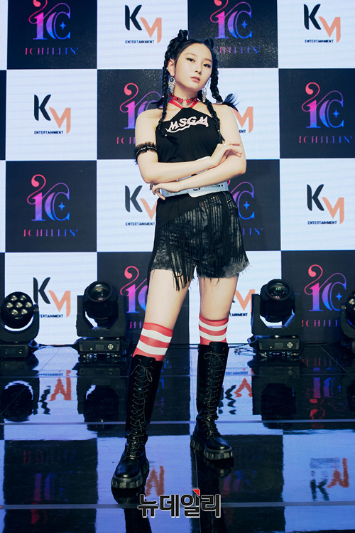 신인 걸그룹 아이칠린 초원이 8일 오전 온라인으로 진행된 데뷔곡 '갓챠(GOT'YA)' 발매 기념 쇼케이스에서 포토타임을 갖고 있다.