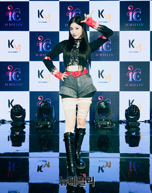 신인 걸그룹 아이칠린 예주가 8일 오전 온라인으로 진행된 데뷔곡 '갓챠(GOT'YA)' 발매 기념 쇼케이스에서 포토타임을 갖고 있다.
