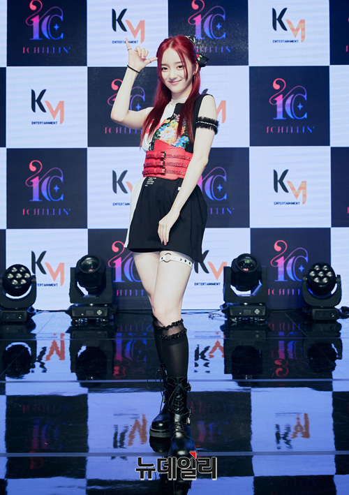 신인 걸그룹 아이칠린 이지가 8일 오전 온라인으로 진행된 데뷔곡 '갓챠(GOT'YA)' 발매 기념 쇼케이스에서 포토타임을 갖고 있다.