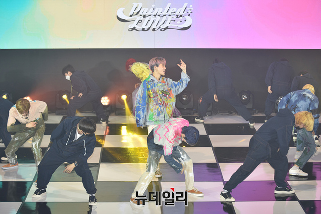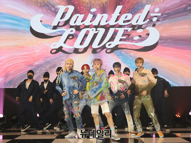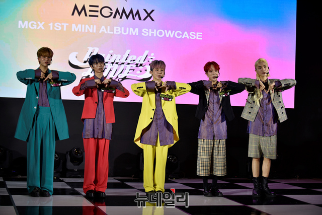 아이돌그룹 메가맥스가 8일 오후 서울 강남구 엘리에나 호텔에서 열린 첫 번째 미니앨범 '페인티드 러브(Painted÷LOVE:)' 발매 기념 쇼케이스에서 수록곡 무대를 선보이고 있다.