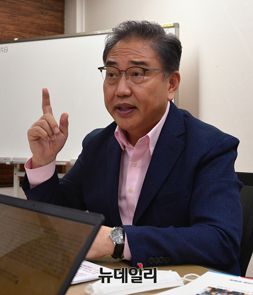 박진 국민의힘 대선 예비후보가 8일 오후 서울 여의도캠프에서 뉴데일리와 외교 현안 관련 인터뷰를 갖고 있다.