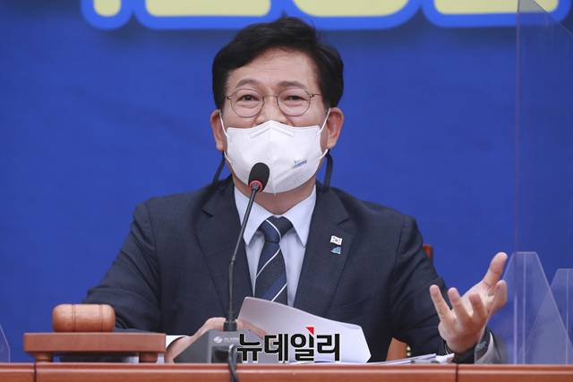 송영길 더불어민주당 대표가 10일 오전 국회에서 열린 최고위원회의에서 모두발언을 하고 있다. (사진=공동취재단)
