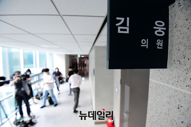 고위공직자비리수사처(공수처) 수사관들이 10일 오전 국회 의원회관에서 '고발 사주' 의혹의 핵심 인물인 국민의힘 김웅 의원의 사무실을 압수수색하고 있다.