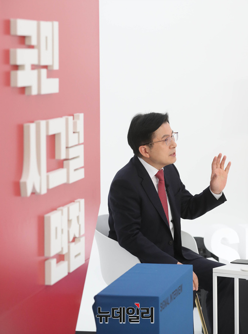 황교안 국민의힘 대선 경선 후보가 10일 오후 서울 금천구 즐스튜디오에서 열린 '국민 시그널 면접'에 참석해 질문에 답하고 있다. (사진=공동취재단)