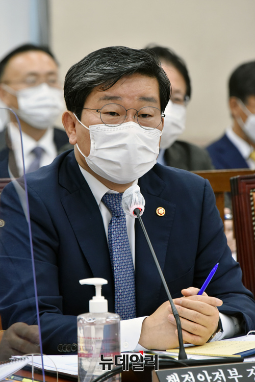 전해철 행정안전부 장관이 13일 국회에서 열린 행정안전위원회 전체회의에서 의원들의 질의에 답하고 있다. (사진=공동취재단)