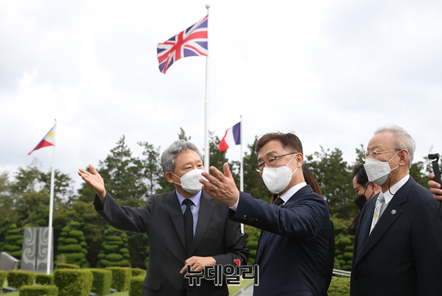 [포토] 한국전쟁 참전용사 황상영 선생과 UN기념공원 찾은 최재형