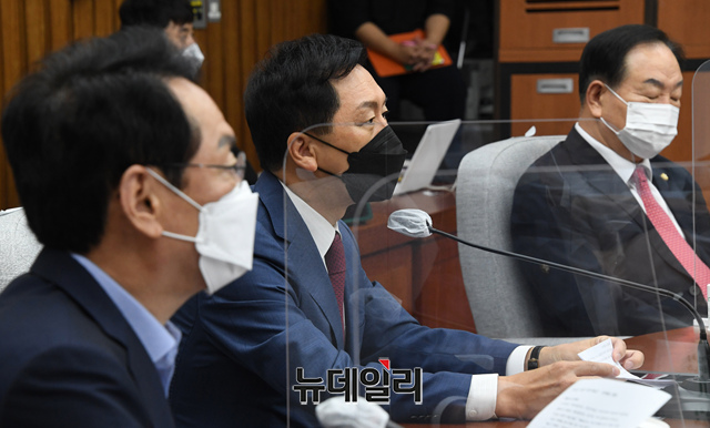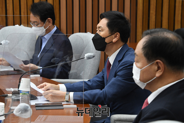 김기현 국민의힘 원내대표가 14일 오전 국회에서 열린 원내대책회의에서 모두발언을 하고 있다. (사진=공동취재단)