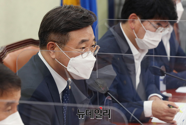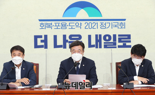 윤호중 더불어민주당 원내대표가 14일 오전 국회에서 열린 원내대책회의에서 모두발언을 하고 있다. (사진=공동취재단)