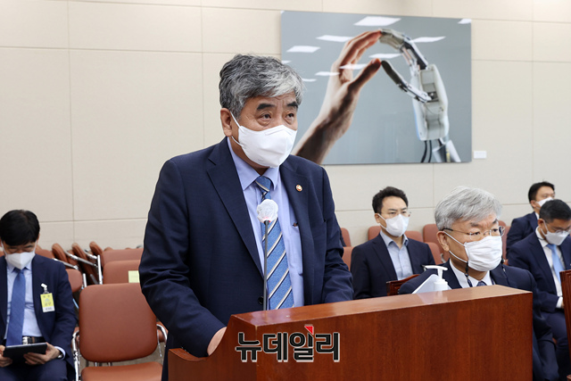 한상혁 방송통신위원장이 14일 오전 국회에서 열린 과학기술정보방송통신위원회 전체회의에서 의원들의 질문에 답하고 있다. (사진=국회사무처)