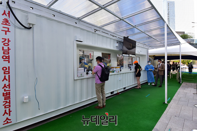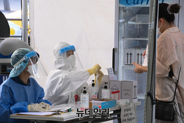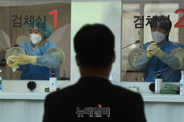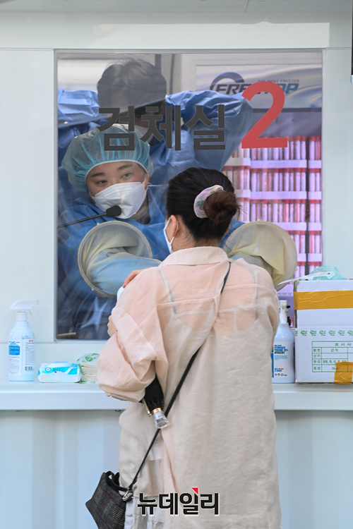 코로나19 신규 확진자가 1,500명 대를 육박하고 있는 14일 오후 서울 서초구 임시선별진료소를 찾은 시민들이 검체검사를 받고 있다. 중앙방역대책본부는 0시 기준 국내 코로나19 확진자가 1,497명 발생했다고 밝혔다.